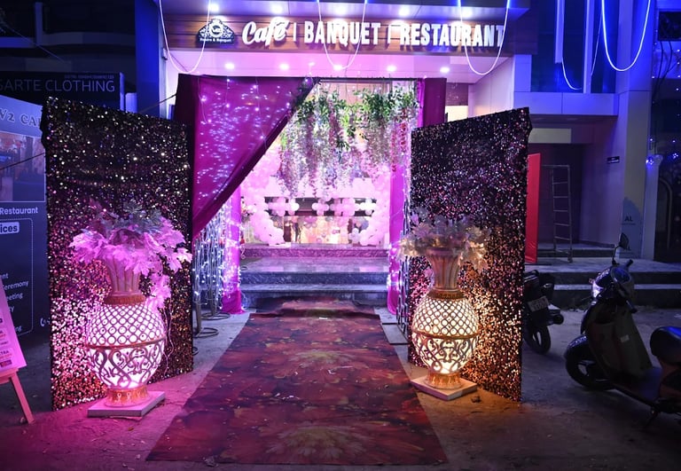 Celebrate life’s beautiful moments in our elegant banquet hall designed for weddings, engagements, birthdays, anniversaries and grand events. With perfect décor, spacious seating, delicious vegetarian food and professional arrangements, we create unforgettable celebrations that reflect your style and make every occasion truly memorable.